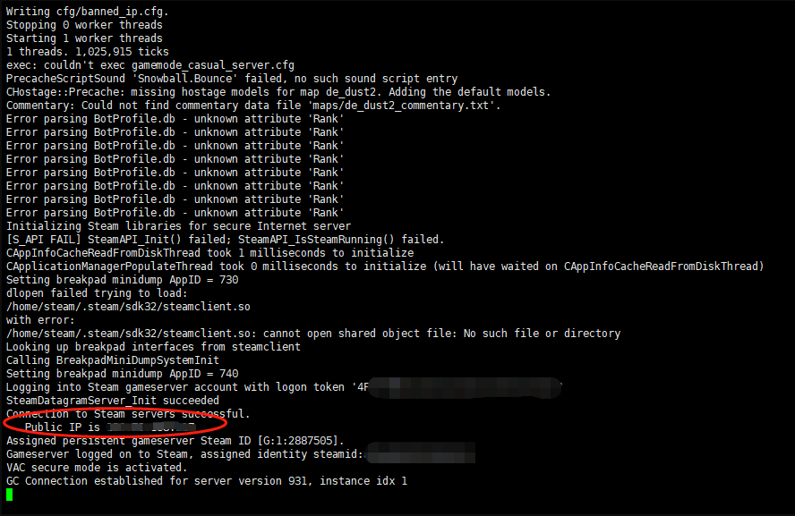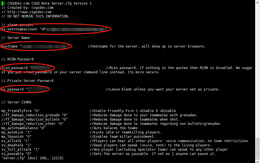 修改完以上参数之后,服务器便可以启动了,关于server.cfg中的其他参数说明,可以在server.cfg文件的注释中查看,也可以前往CSGODev查看