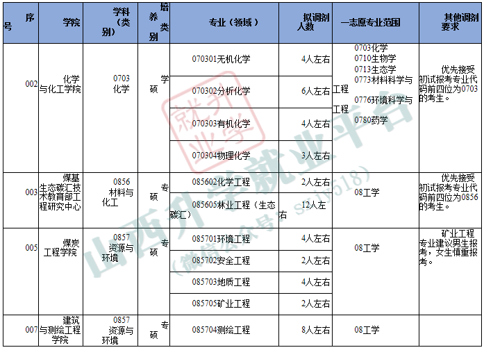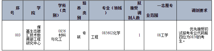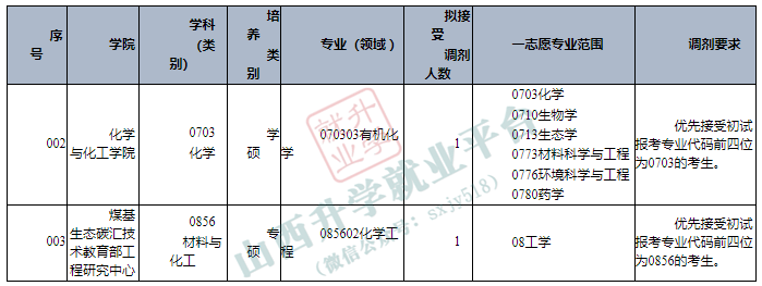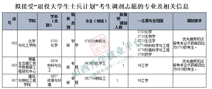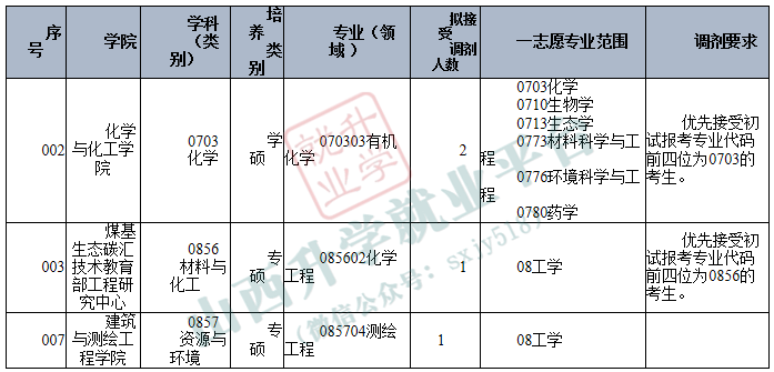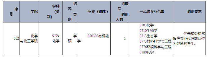 根据国家下达的最终招生计划及各学科前期拟录取情况,我校资源与环境、材料与化工、化学学科(专业)将继续开放调剂系统。现面向全国公开征集调剂志愿,欢迎符合条件的普通计划及退役大学生士兵计划考生报名。其他专业另行通知。