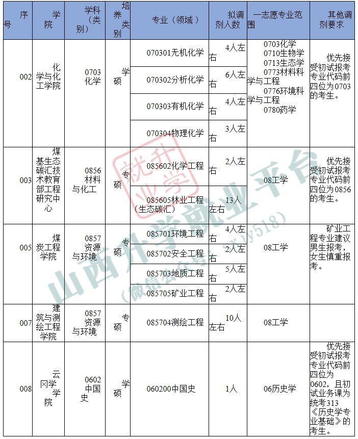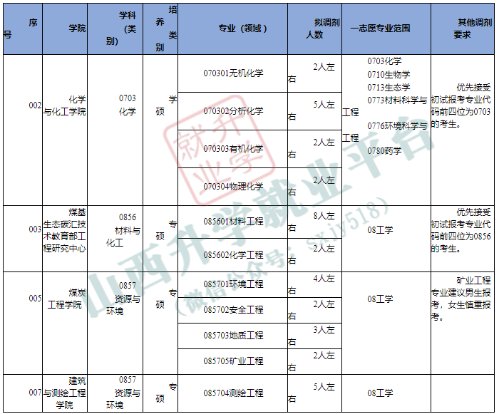 山西大同大学2026年硕士研究生招生调剂公告 (资源与环境、材料与化工第五批次,化学第六批次)