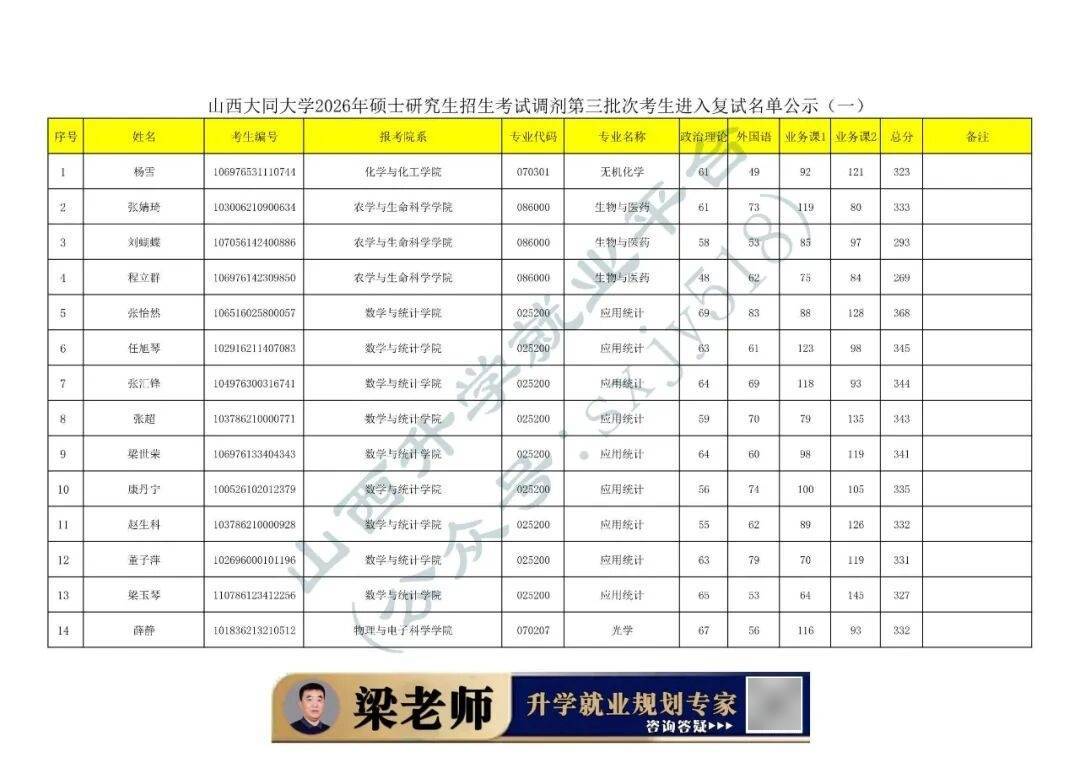 全国各高校复试分数线、复试名单近期集中公布,本周末首批复试将全面启动,下周起各院校复试将陆续展开;预调剂系统也将于3月28日开放报名。今年过国家线万,全国研究生总录取计划110万;推免(保研)约30万,统考实际剩余名额仅约80万。这意味着即便过线万考生最终无法录取竞争极为激烈。26年太原理工复试线年明显上涨,热门专硕涨得最多,学硕普遍小幅上涨。山西大学26年复试线整体大幅上涨,热门专硕/文科自划线专业涨得最猛,多数专业比25年高10–30分。中北大学复试分数线年,工学热门专硕涨幅普遍在20–50分。专硕竞争更激烈,涨幅普遍大于同专业学硕。