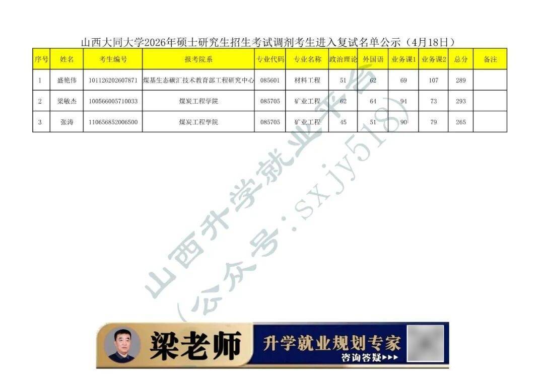 考生可致电山西大同大学研究生院进行咨询。复试录取相关信息会在山西大同大学研究生院网站公布,请各位考生及时关注山西大同大学研究生院官网及微信公众号。