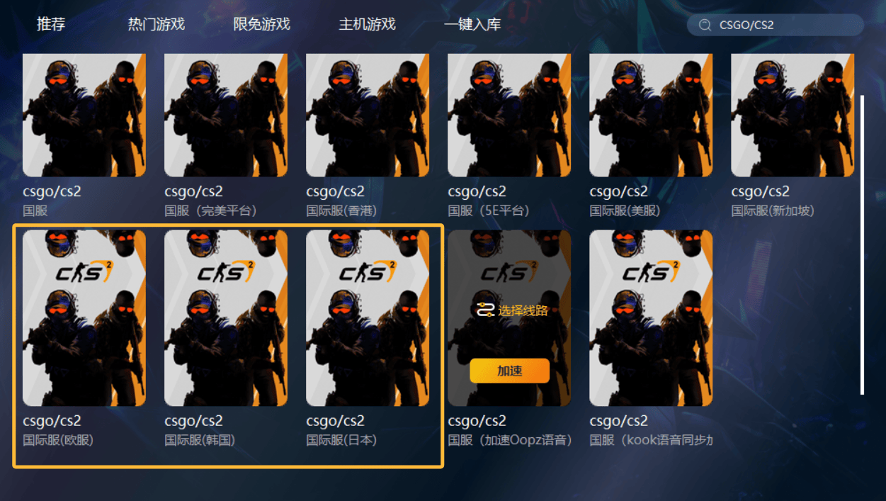 只需要下载且开启加速工具(斧牛),然后在首页搜索栏中输入“CSGO/CS2”点击进入页面,选择“欧服或者日服”点击加速,加速之后就完全不用担心网络方面的问题了。